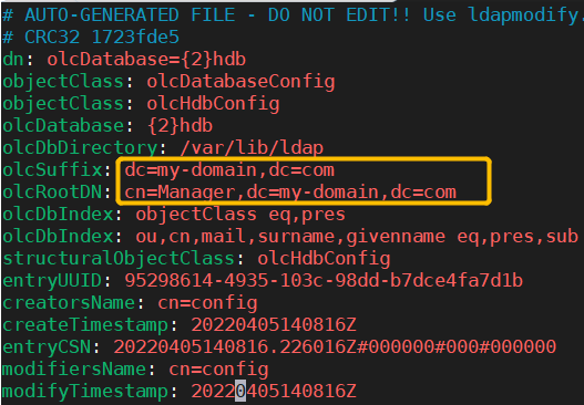 配置 /etc/openldap/slapd.d/cn=config/olcDatabase={2}hdb.ldif