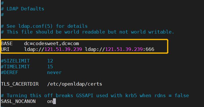SERVER="ldap://localhost"改成SERVER="ldap://121.51.39.239"