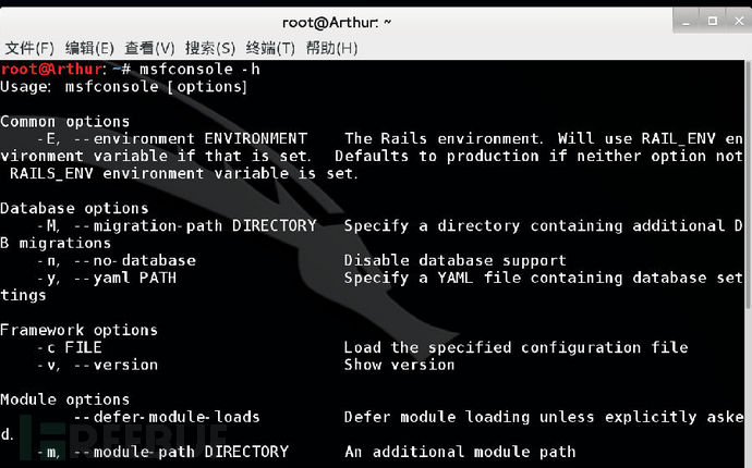 Msfconsole有两个查看帮助的选项。一个是msfconsole -h,一个是help。