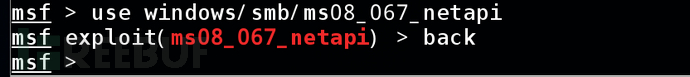 这张图说明,才开始我使用了ms08_067_netapi的利用模块,之后使用了back参数返回。