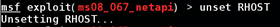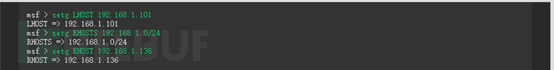 这个主要是对payload或者其他模块进行设置。比如设置攻击目标的IP就是“set RHOST 192.168.0.2”:
